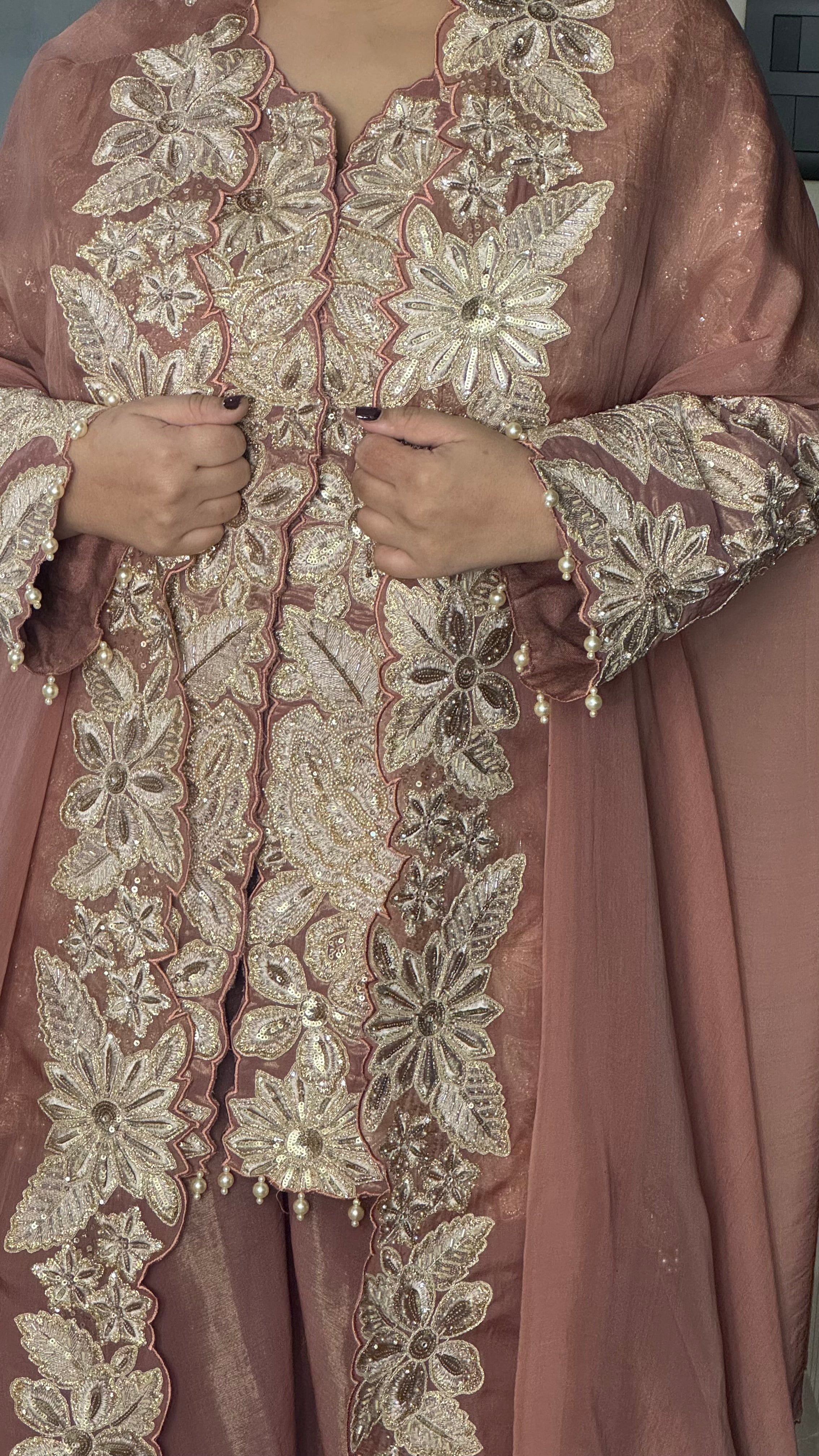 Indo-Western Sequence work with thread embroidery pearls tassels cape style 3 pcs set Ensemble |