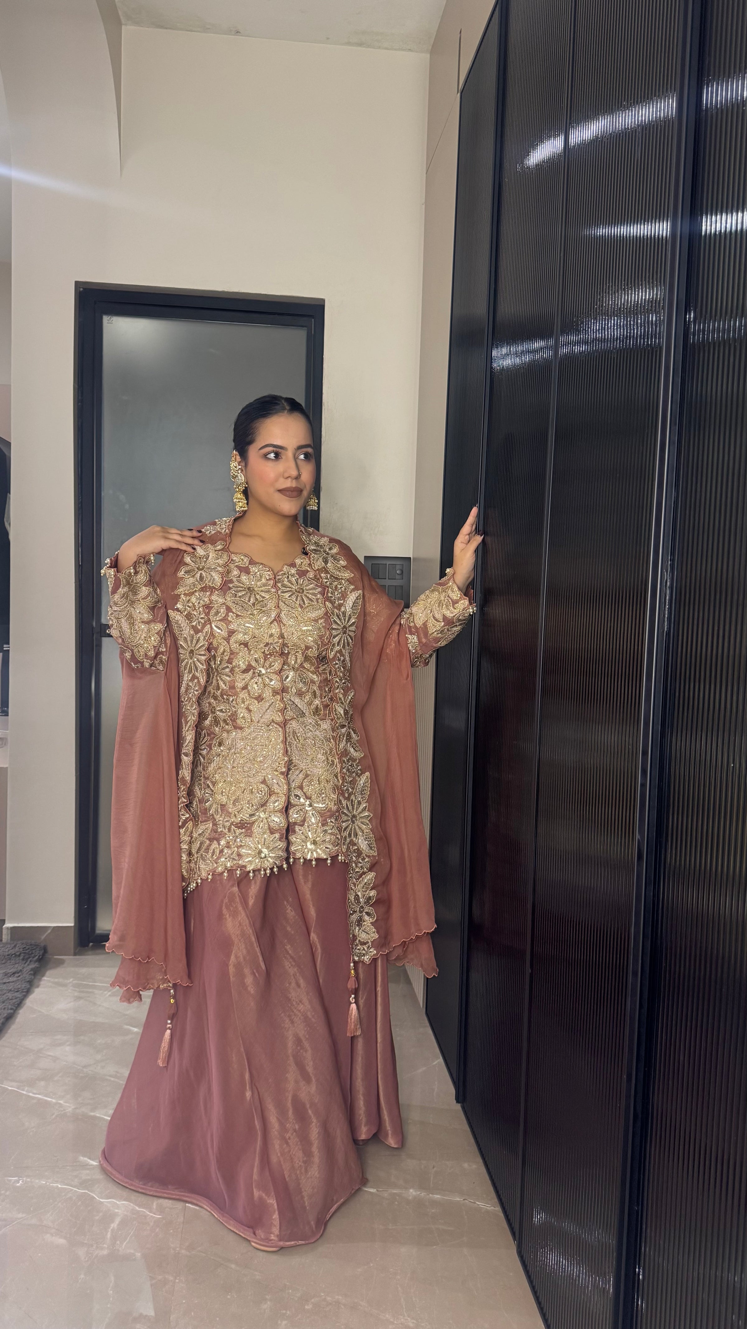 Add a statement sparkle to your festive wardrobe with our Indo-Western Sequin Work Ensemble. Designed for modern celebrations, this outfit features premium shimmer silk fabric adorned with intricate sequin detailing. The silhouette offers a flattering fall and effortless drape, making it perfect for weddings, parties, and special occasions.